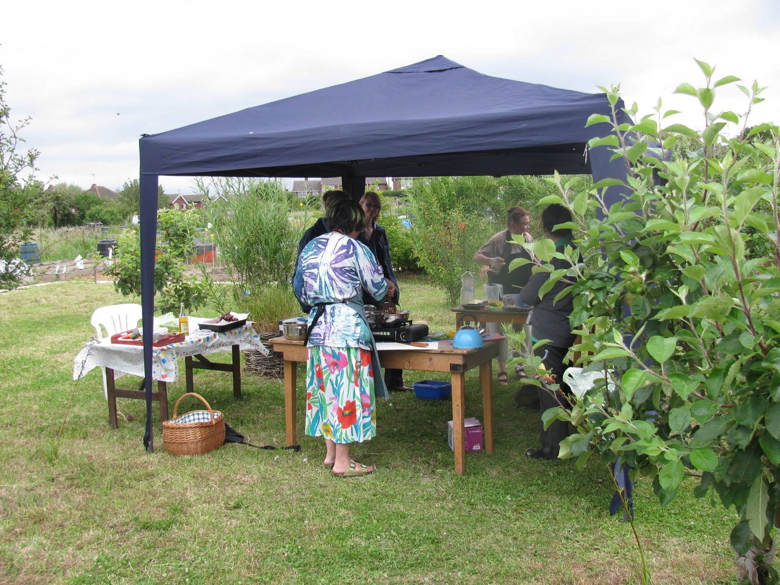 Lauren, Mary and Gill welcomed Surestart workers and local families to the site for a cook and taste session. The weather stayed dry!The children and parents enjoyed looking round the site, watching the neighbouring chickens and trying the fabulous food prepared by volunteers, staff and parents.